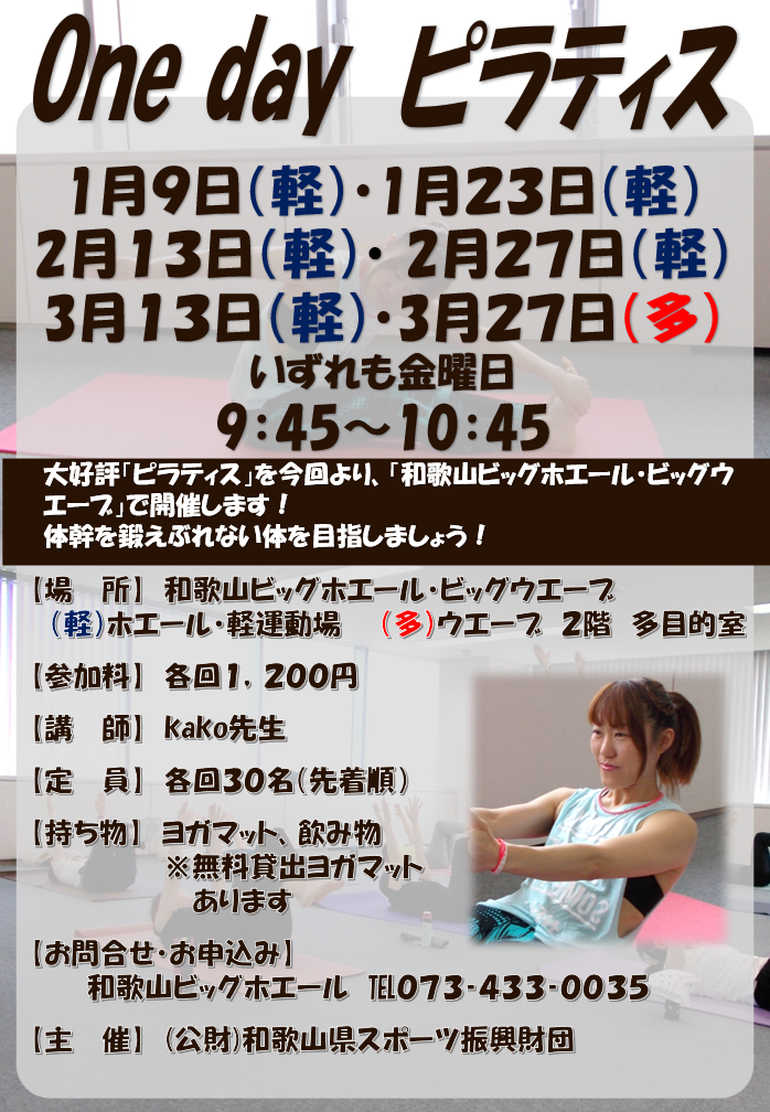 ビッグ愛で大好評の「ピラティス」教室を令和8年1月より「和歌山ビッグホエール・ウエーブ」に