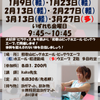 ビッグ愛で大好評の「ピラティス」教室を令和8年1月より「和歌山ビッグホエール・ウエーブ」に 場所を移し、イベン …