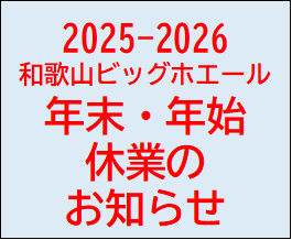 令和7年12月28日(日)・・・9時~17時まで営業を行い、17時閉館となります