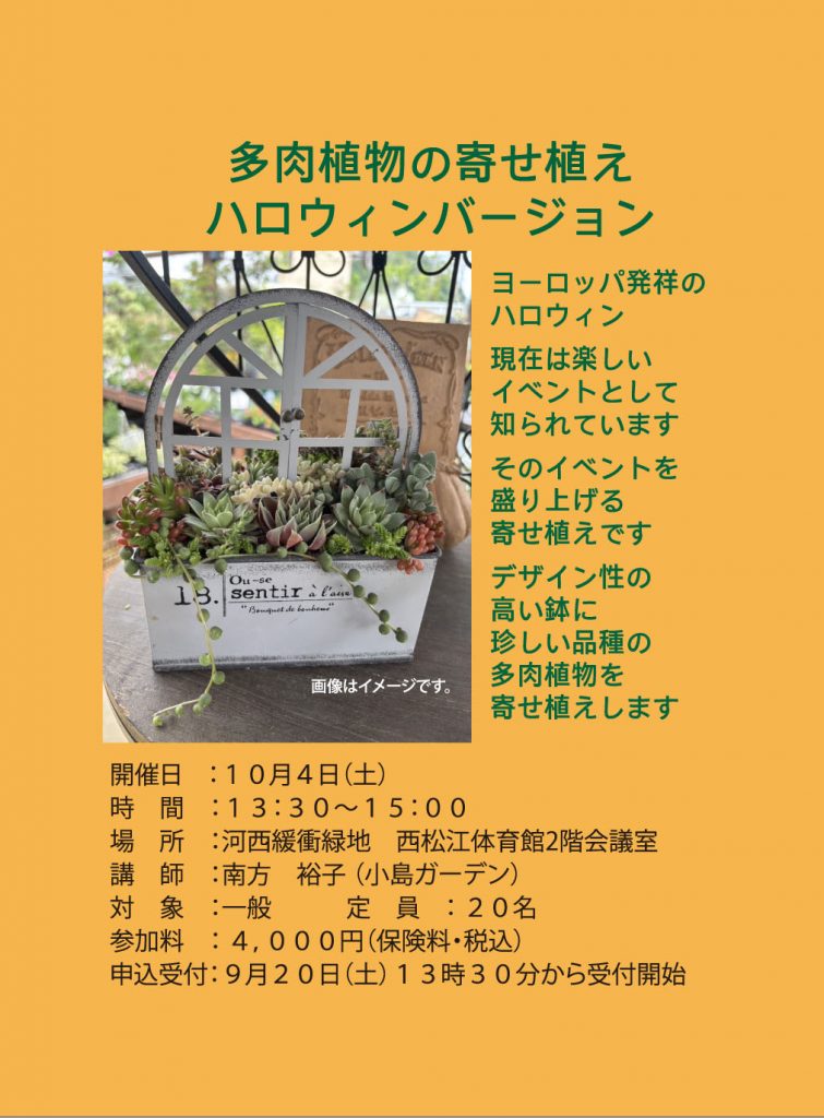 • 10/4(土)多肉植物の寄せ植え「ハロウィンバージョン」