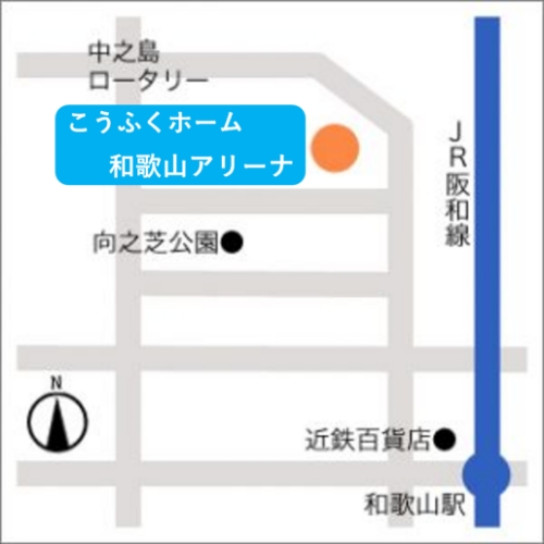 こうふくホーム和歌山アリーナへお越しの際は、下記のアクセスマップをご参照ください。