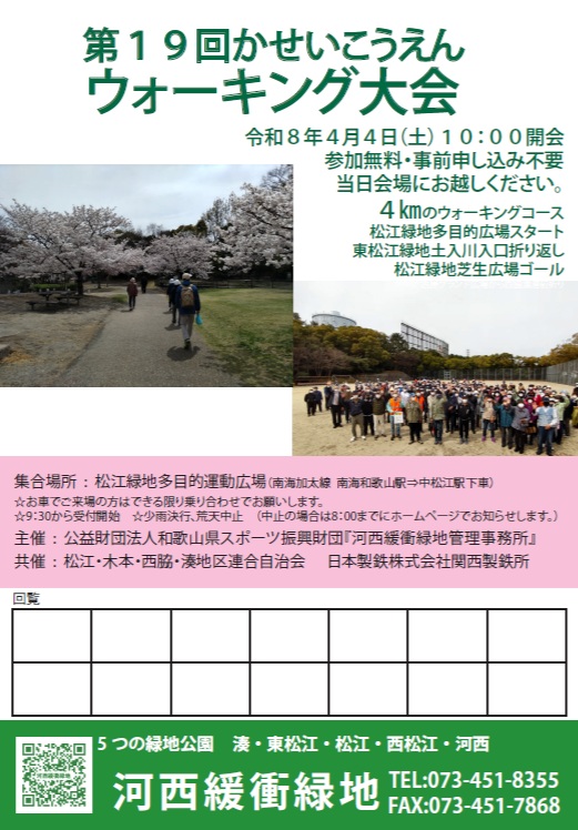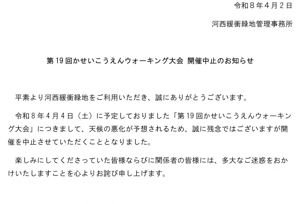 2026/4/4(土)第19回かせいこうえんウォーキング大会中止